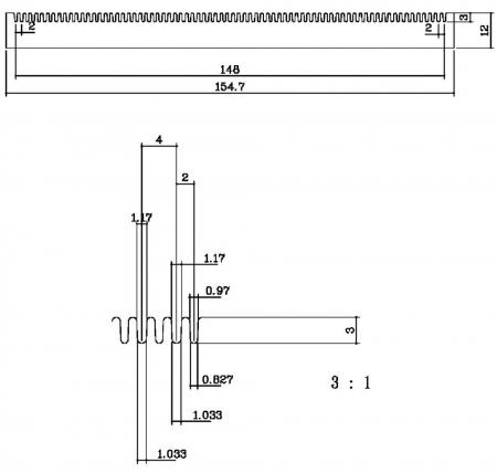 | 番号 | 総長 | 総幅 | ブレードの高さ | 底の厚さ | ブレード間隔 | ブレードの厚さ |